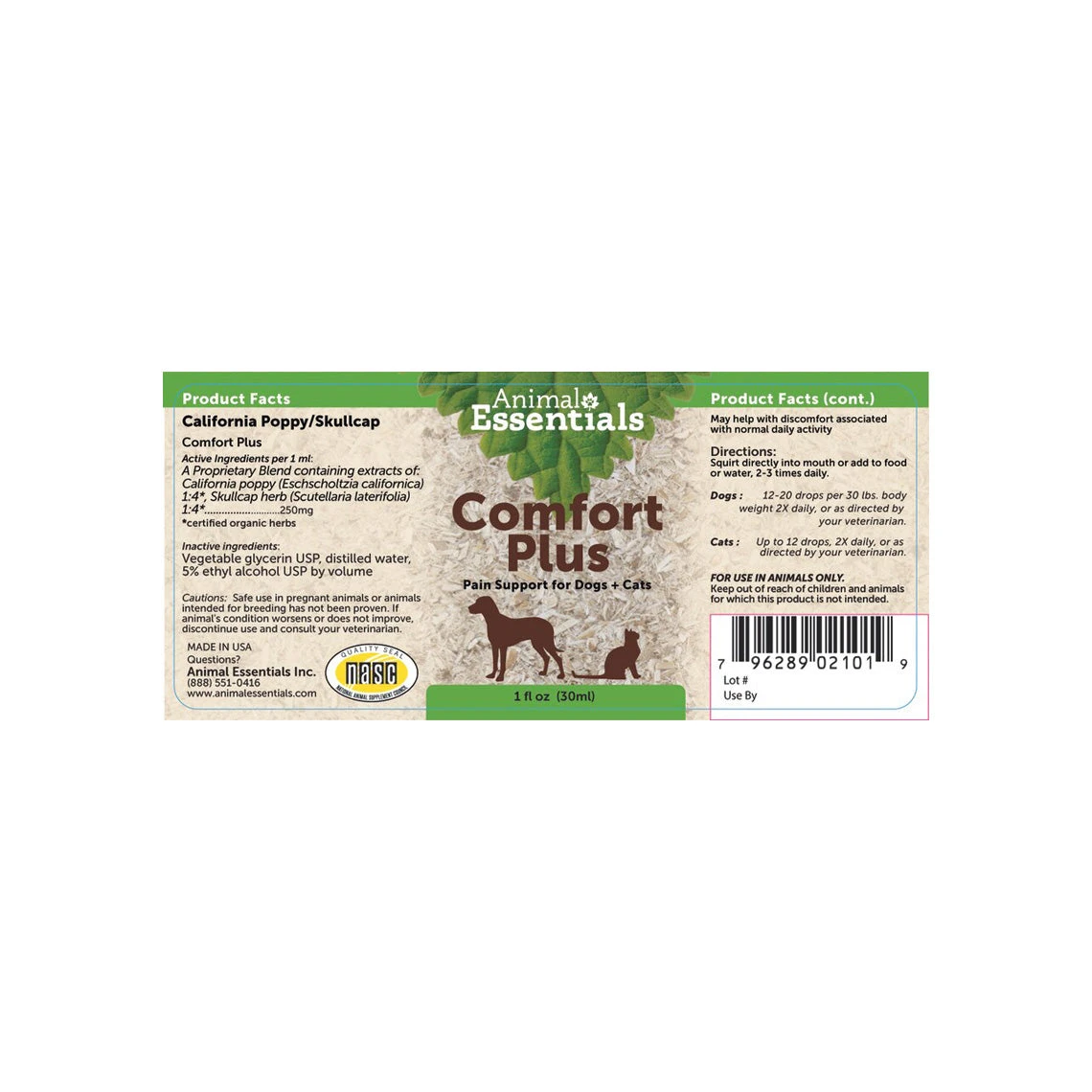Animal Essentials Comfort Plus is your pet’s new best friend in any outdoor or indoor activity. Comfort Plus contains certified organic extracts from California poppy and skullcap herb which provides a cushion that aids your dog or cat from discomfort. Available in a liquid formula for easy administering to dogs and cats.