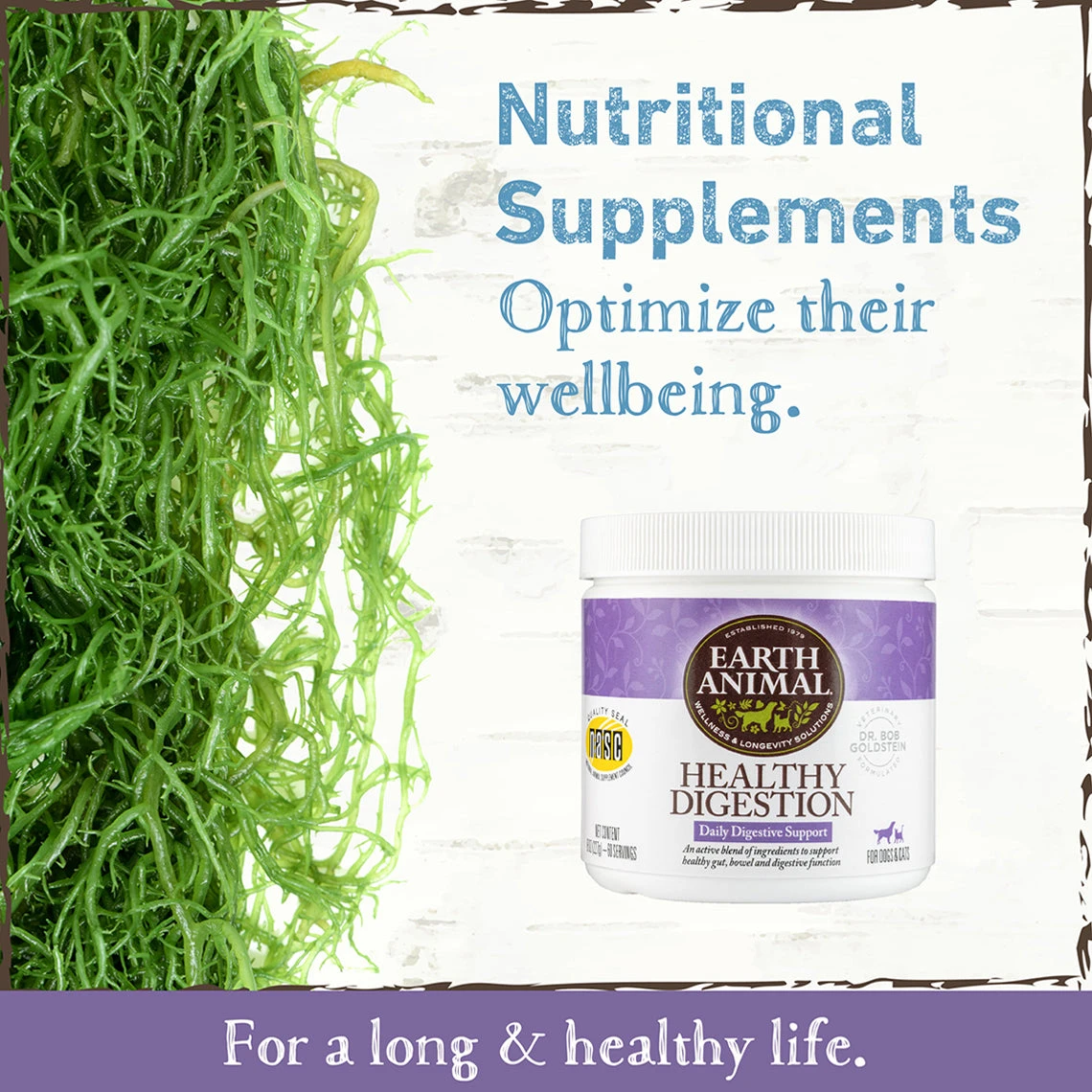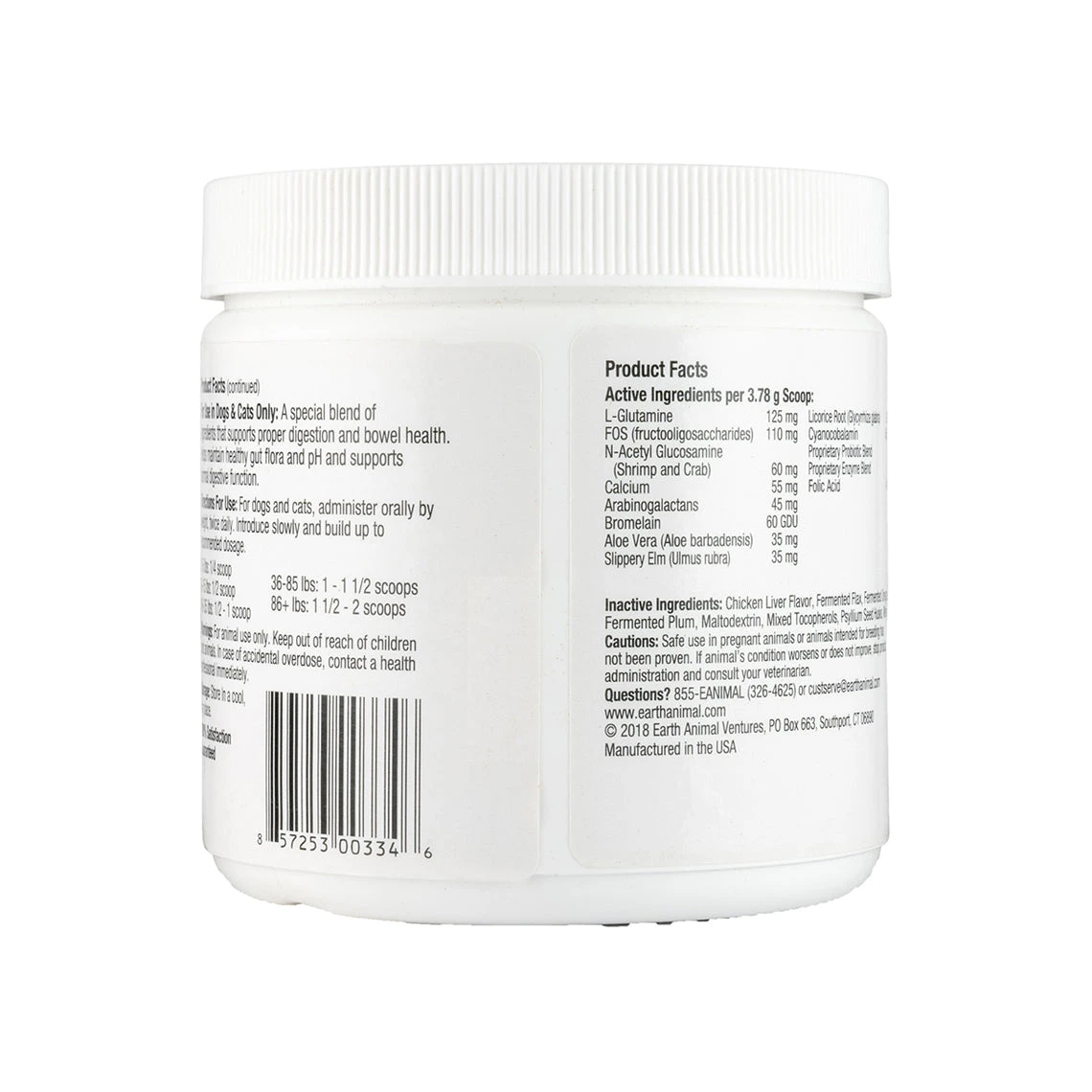 Earth Animal Healthy Digestion Nutritional Supplement Powder for Cats & Dogs supports proper digestion and bowel health. Helps maintain healthy gut flora and pH, and it supports normal digestive function.