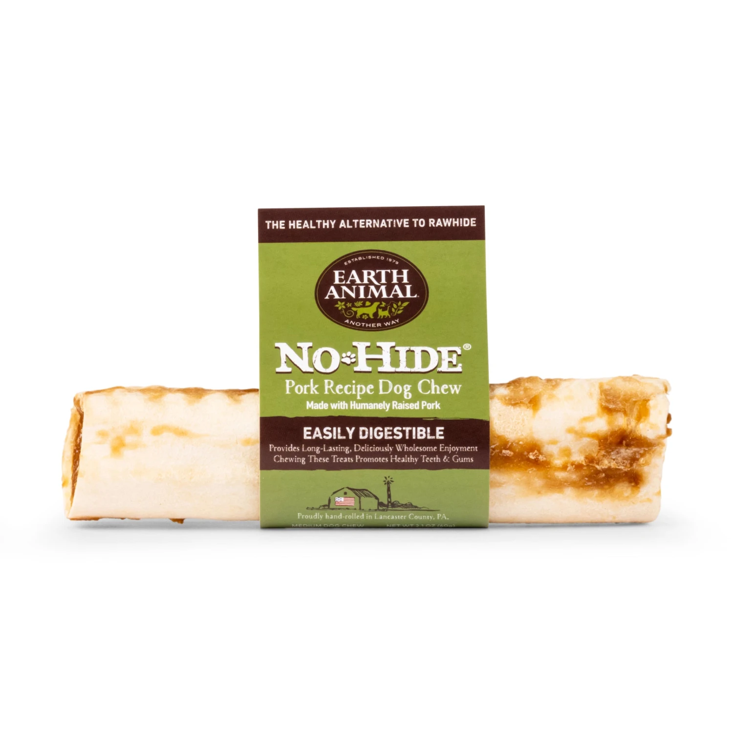 Earth Animal’s Pork No-Hide Chews deliver healthy, deliciously long-lasting chewable bliss for dogs of all shapes and sizes. No-Hide Wholesome Chews are the healthy, hand-rolled alternative to rawhide! They are carefully hand-rolled, uniquely cooked then air-dried making them easily digestible and nutritious.
