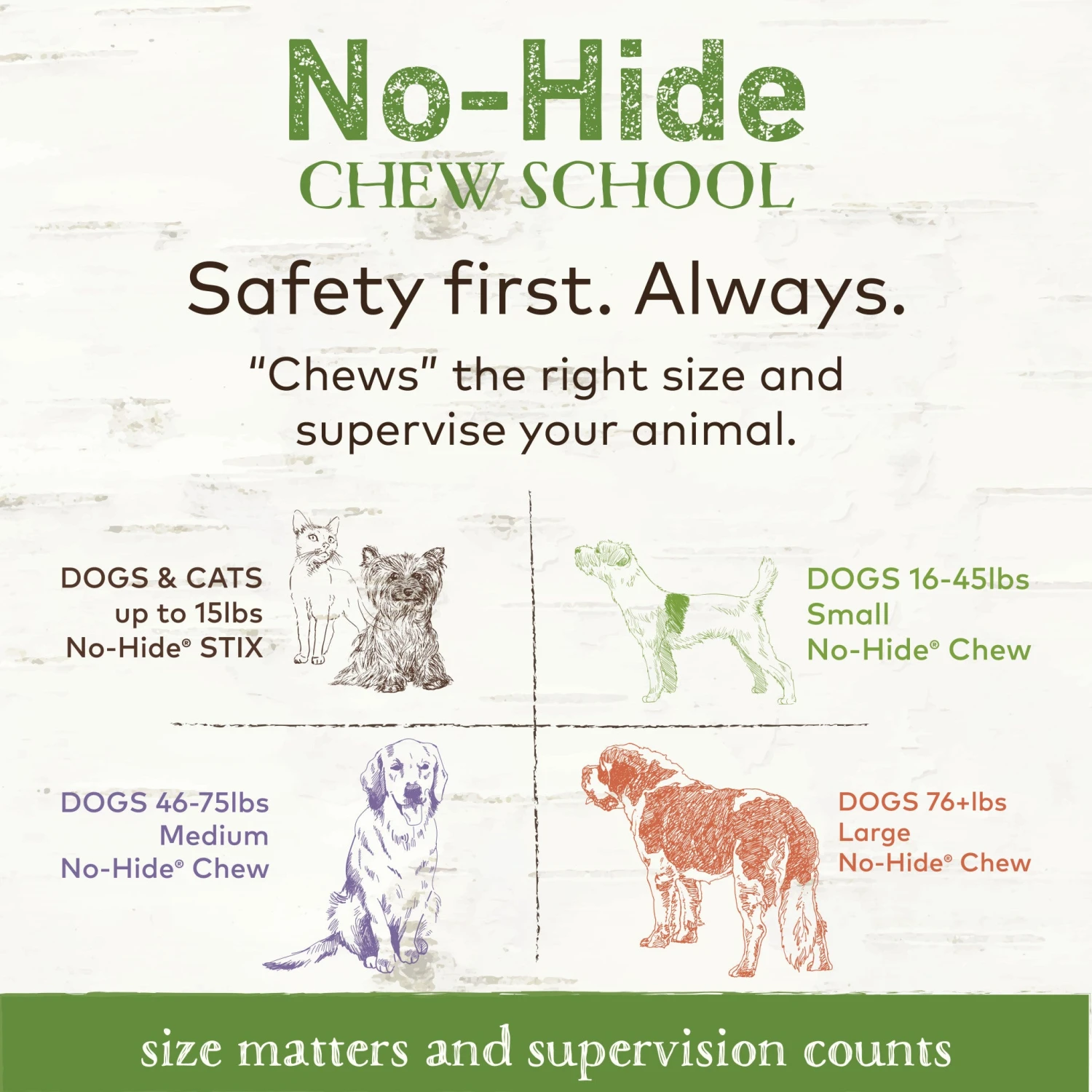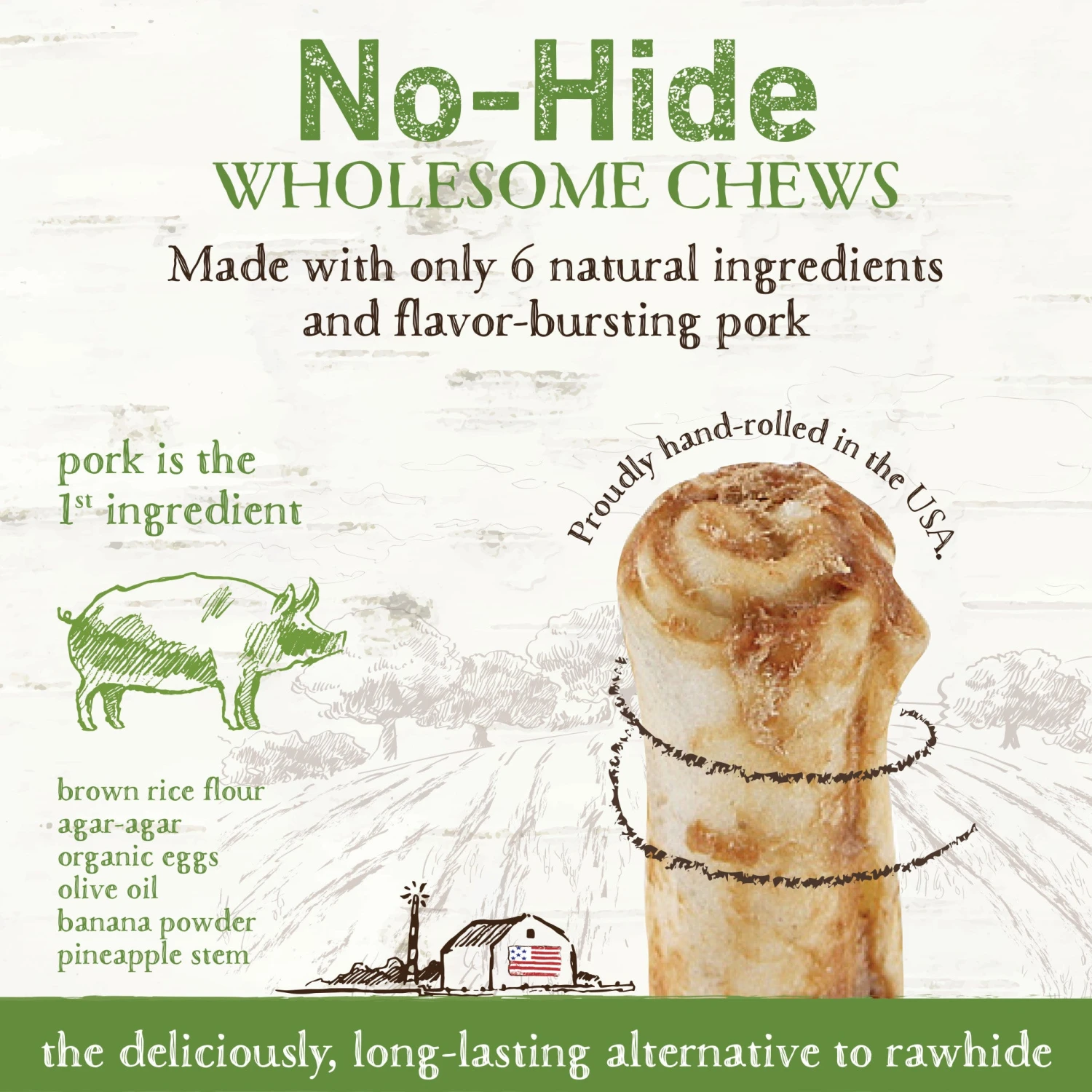 No-Hides are 100%Â free of rawhide, chemicals, additives, bleaches, and formaldehydes. No-Hide Wholesome Chews are proudly made in the USA. They are carefully blended with 7 pure & simple ingredients, hand-rolled, baked, coated, air-dried & packed with love in Lancaster County, PA.