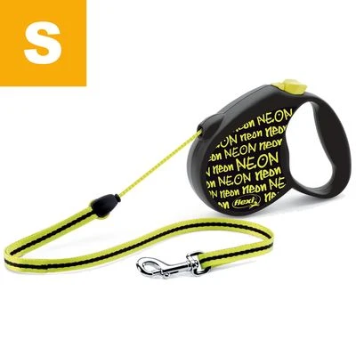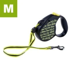 Modern and safe: a retractable lead in black casing with a yellow print pattern. The 5m lead is bright neon yellow. Stay visible when the light starts to fades.