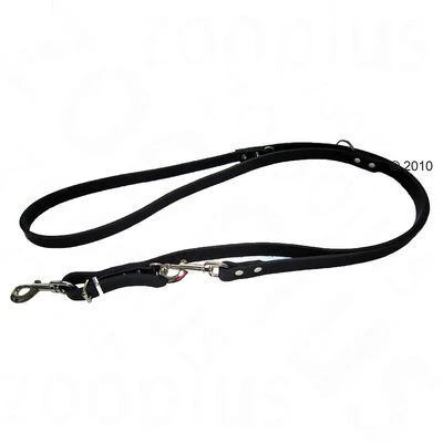Riveted dog lead from Heim, made from soft, oiled black leather, adjustable to three lengths.