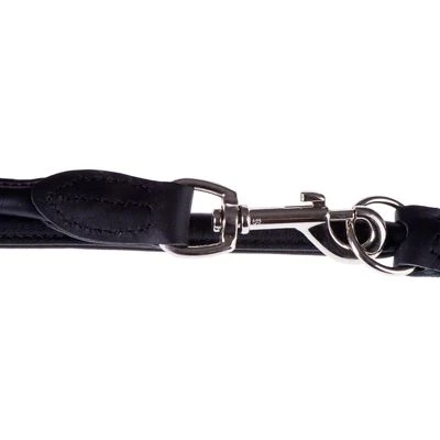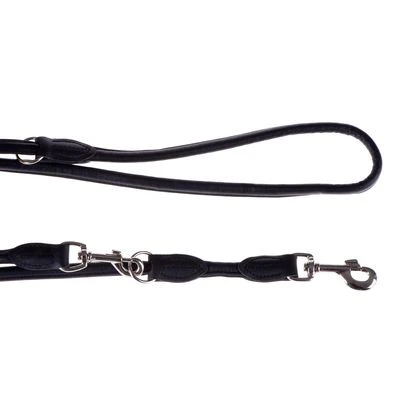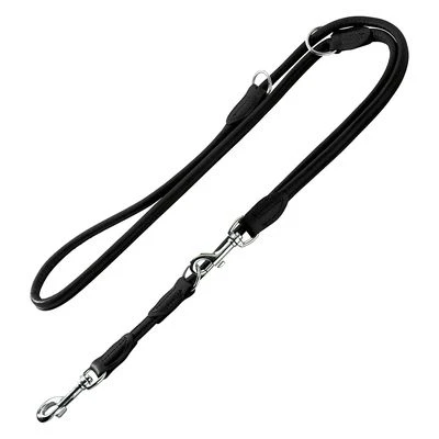 Adjustable dog lead with a round finish made from soft elk skin. Its round shape makes this lead particularly soft on your dog’s coat. Colour: black.