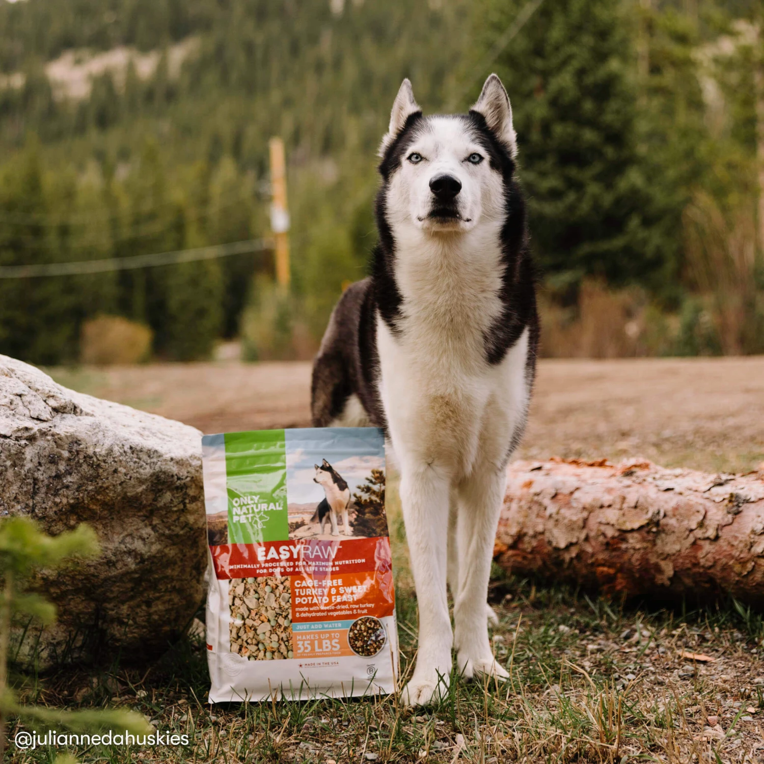 Only Natural Pet EasyRaw Cage-Free Turkey & Sweet Potato Feast Dehydrated Dog Food is made with freeze-dried, raw turkey and dehydrated vegetables and fruits. These minimally processed ingredients combine for maximum nutrition, freshly prepared meal that is complete and balanced for adult dogs.