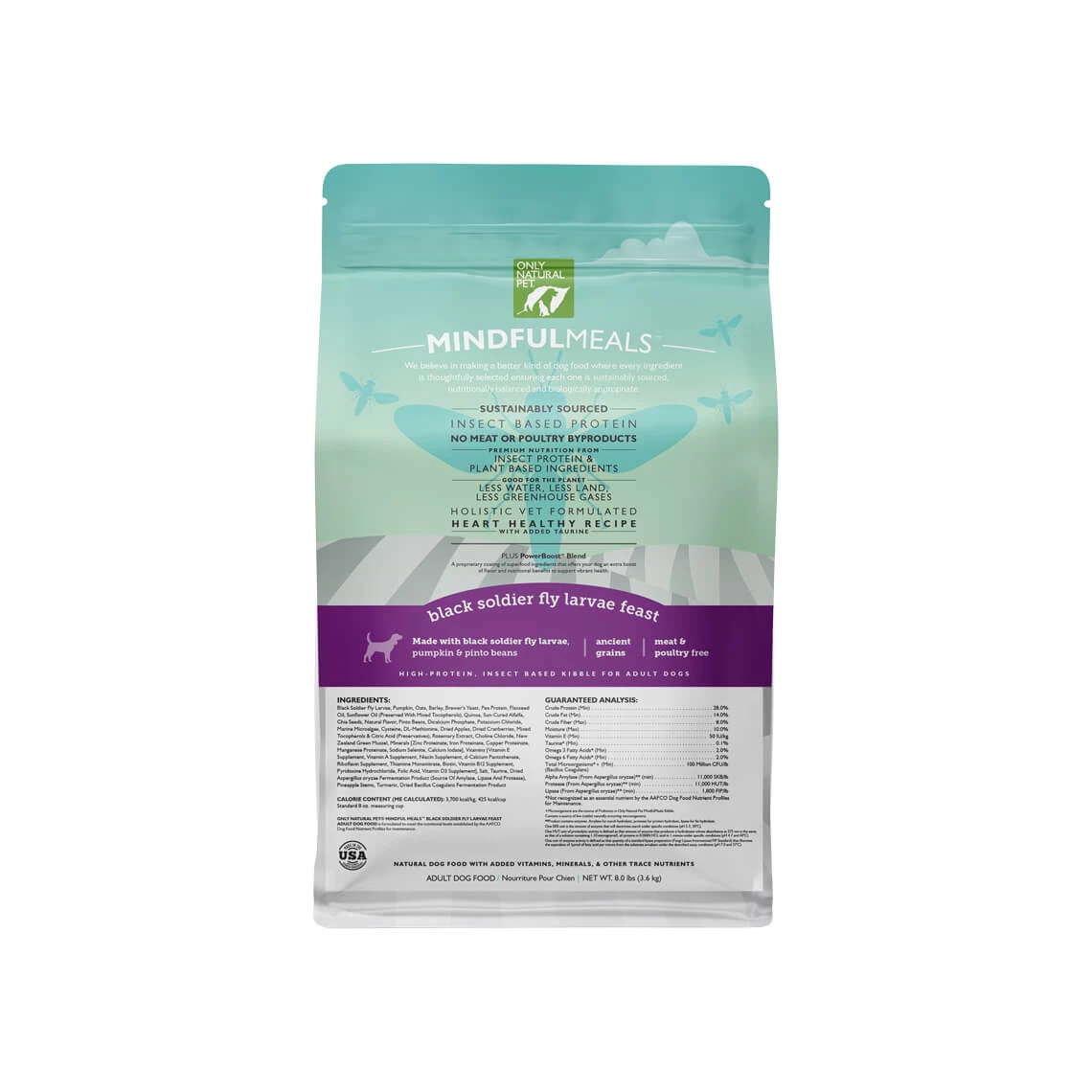 The ultimate in sustainable nutrition, insects are the clean protein source that benefits your dog – and our earth. Low impact and high protein, Only Natural Pet MindfulMeals is an extraordinary recipe that minimizes the impact of your dog’s food on the environment while providing the vital energy and nutrients your dog needs to thrive.