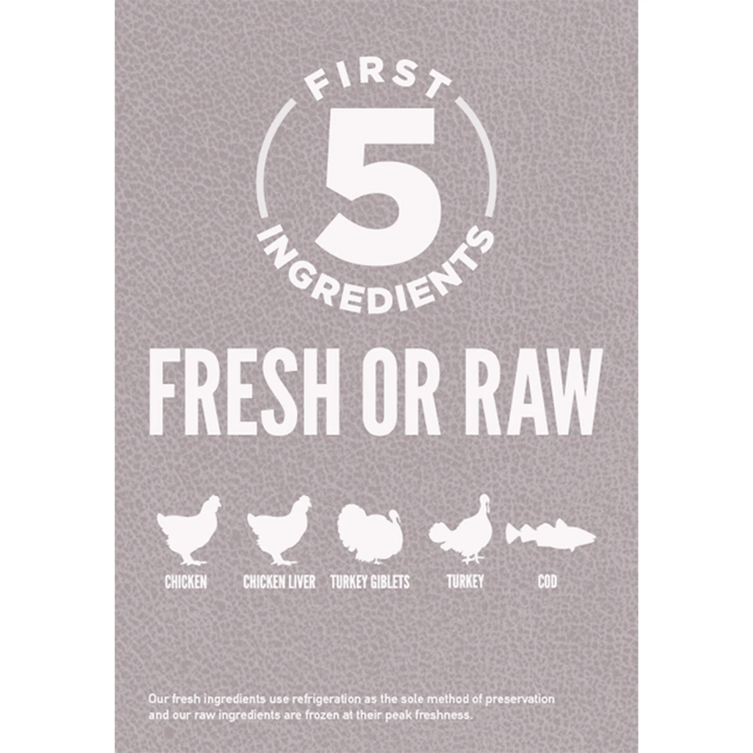 Every recipe of Orijen Grain-Free Dog Food starts with the highest quality meats sourced from regional farming partners delivered fresh daily. These include meat, organ meat and cartilage, giving your dog a natural, whole prey diet. Added to this are nutrient dense, antioxidant rich fruits and vegetables and a botanical blend of herbs which support overall health and bridge the gap between complete nutrition and physical well-being.