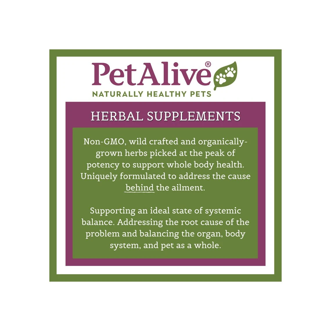 Pet Alive products contain no animal products, gluten, artificial colors, flavors or preservatives, are suitable for lacto-vegetarians and are not tested on animals. This product contains absolutely no parabens, sodium laurel sulfate (SLS) or harmful petrochemicals. Individual ingredients are well-researched and are natural, safe and effective.