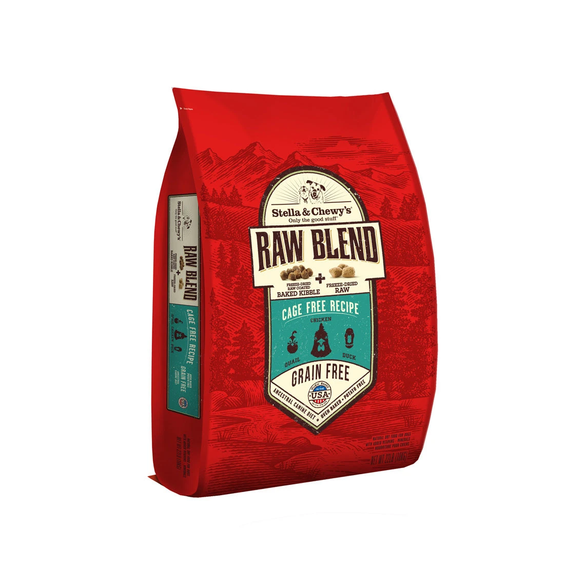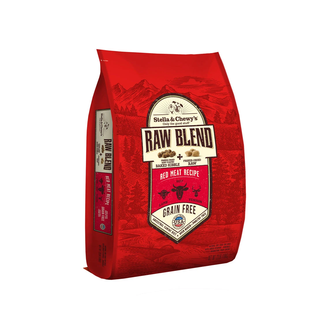 Stella & Chewy Raw Blend Dry Dog Food features a unique mix of freeze-dried raw coated kibble and raw inclusions throughout. Each formula is a mix of delicious responsibly sourced proteins.Â